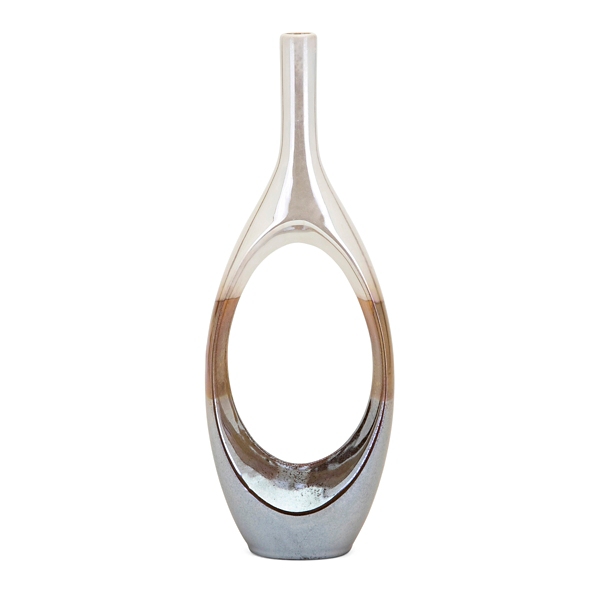 Keyhole silver vase with its distinctive shape and lustrous matte with its distinctive shape and lustrous matte finish the wide keyhole vase adds a warm metallic shine and modern style to any space.