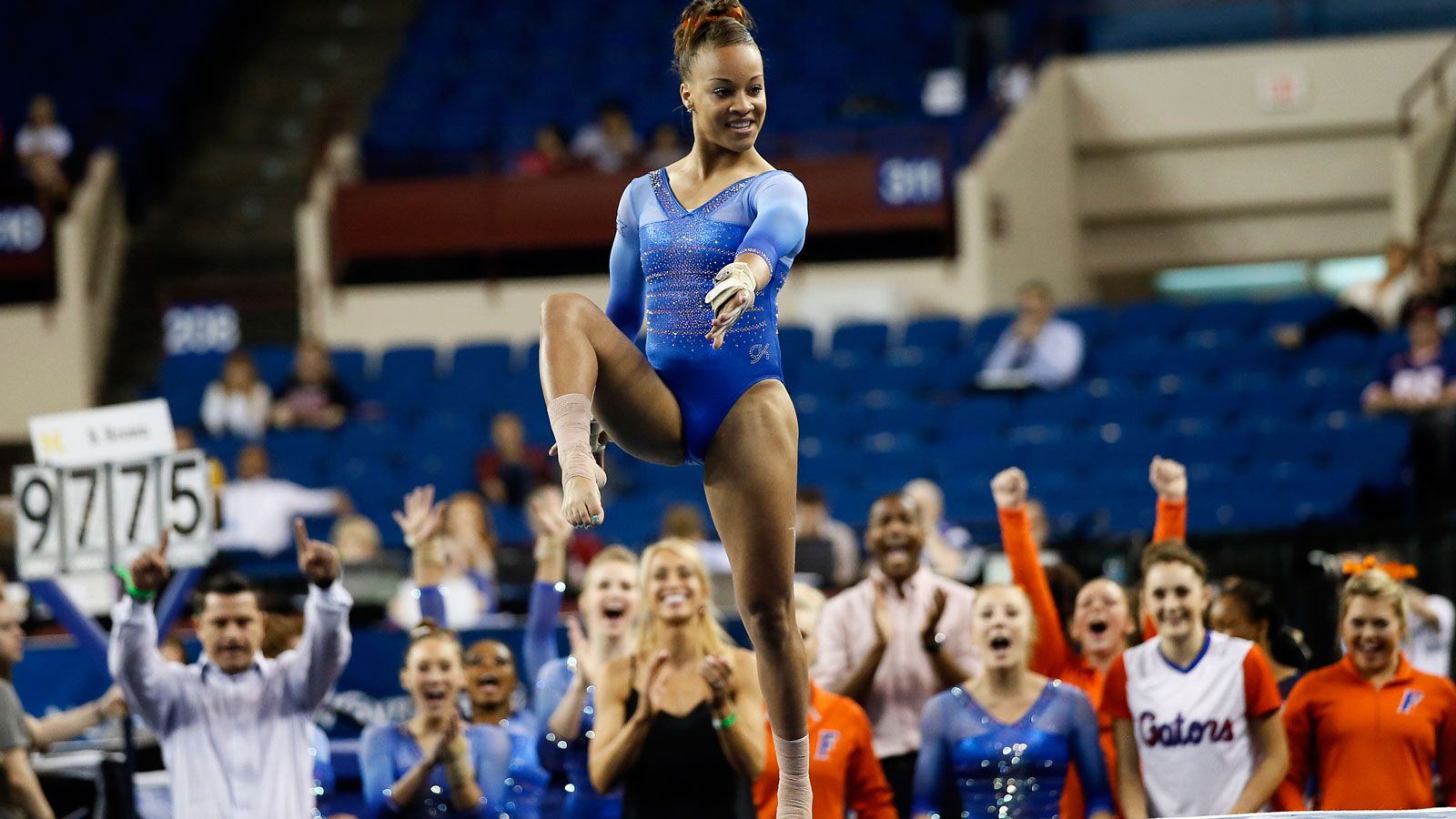She opened ncaa championship action friday by tying with ucla s samantha peszek for the ncaa all around title then saturday she helped the gators win their third consecutive ncaa team title she finished the weekend and her collegiate career with a stellar routine sunday to claim the ncaa floor.